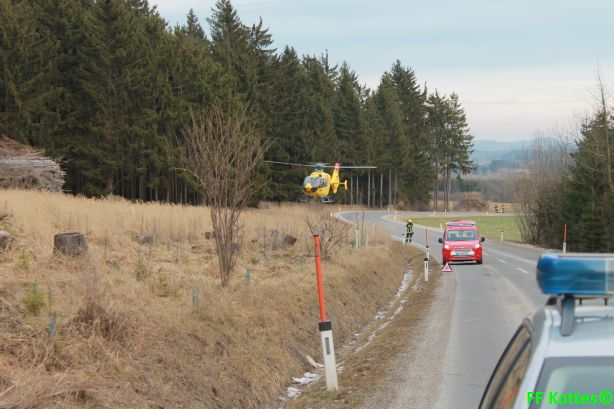 Am 16. Februar um 15:24 Uhr wurde die Feuerwehr Kottes zu einem Verkehrsunfall auf die L78 nach Reichpolds alarmiert. Minuten später rückten das Kommandofahrzeug, das Rüstlöschfahrzeug und das Mannschaftstransportfahrzeug mit 17 Mann zum Einsatzort aus. Über Funk wurden Wir in Kenntnis gesetzt dass die Verunfallte Person nicht eingeklemmt ist, Rettung und Polizei schon vor Ort sei. Auch der Notarzthubschrauber Christophorus 2 aus Krems befand sich bereits im Anflug. Die Einsatzstelle wurde von uns Abgesichert, der Brandschutz aufgebaut und die Rettung unterstützt. Der Unfalllenker wurde mit den Rettungswagen abtransportiert. Somit konnte die Besatzung des Notarzthubschraubers wieder den Heimatstützpunkt anfliegen. Nach der Unfallaufnahme durch die Polizei konnten wir den verunfallten Pkw mit der Seilwinde des Rüstlöschfahrzeuges aus den Graben auf die Straße ziehen. Danach wurde der Unfallwagen privat abgeschleppt. Nach Beendigung der Fahrbahnreinigung konnte die Straße für den Verkehr wieder freigegeben werden. Einsatzdauer ca. 1 Stunde. Wir bedanken uns bei der Rettung, der Besatzung des Christophorus 2 und der Polizei für die gute Zusammenarbeit! Eingesetzte Einsatzkräfte: FF Kottes mit 3 Fahrzeugen und 17 Mann